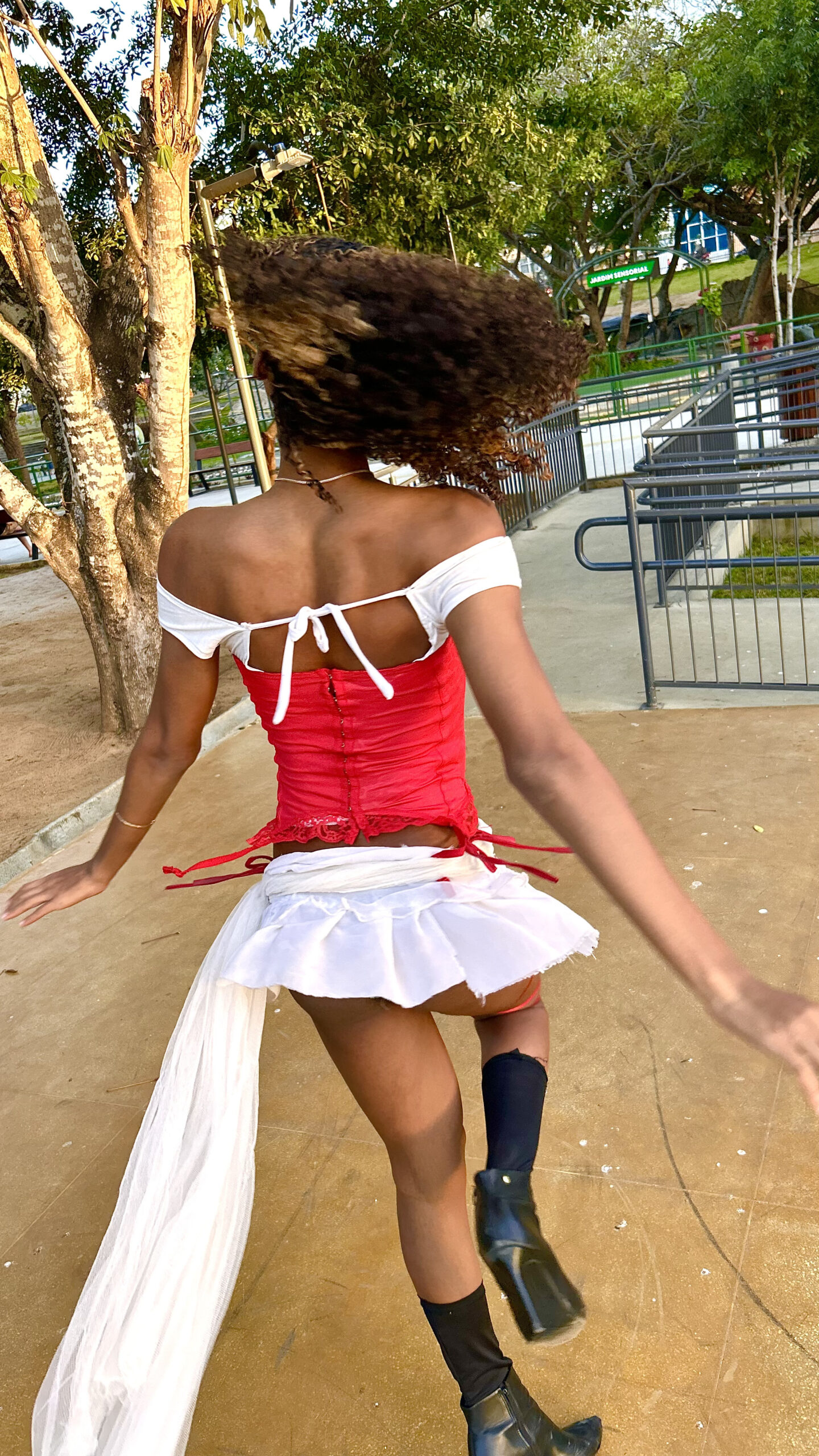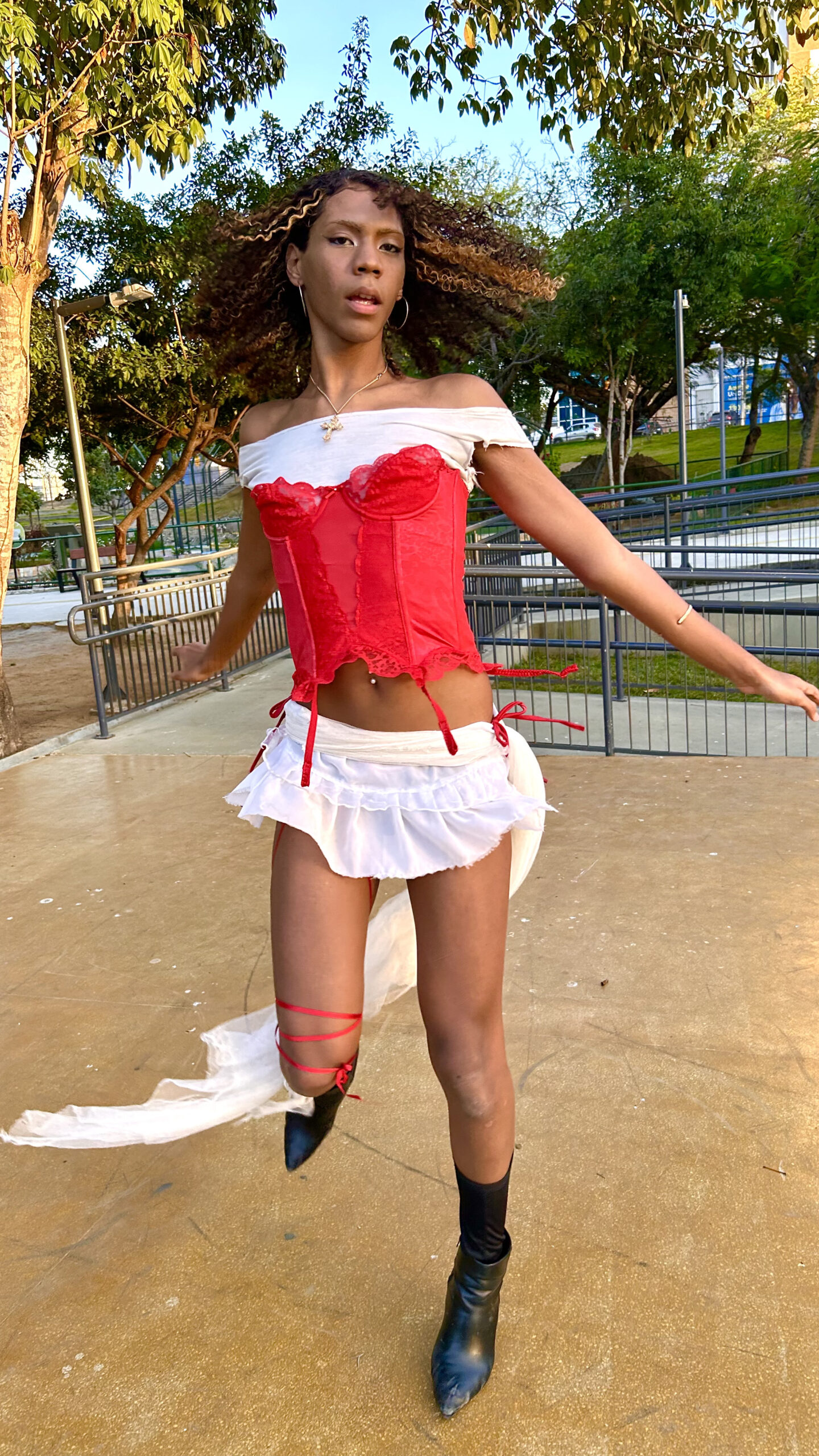 Ayana é uma poesia urbana em forma de gente, com as mãos, no catwalk, em giros e mergulhos (spins e dips) ou na performance solo, entre outros. A conheci por intermédio do meu filho, que já a acompanhava de perto no movimento ballroom. Pelas redes sociais, eu a via sempre nos corres: dançando em cada canto possível, se descobrindo no corpo e abrindo espaço na cena. Prestes a completar a maioridade, essa menina-moça trans ou travesti tem uma sensibilidade rara — daqueles corpos que falam antes mesmo das palavras chegarem.